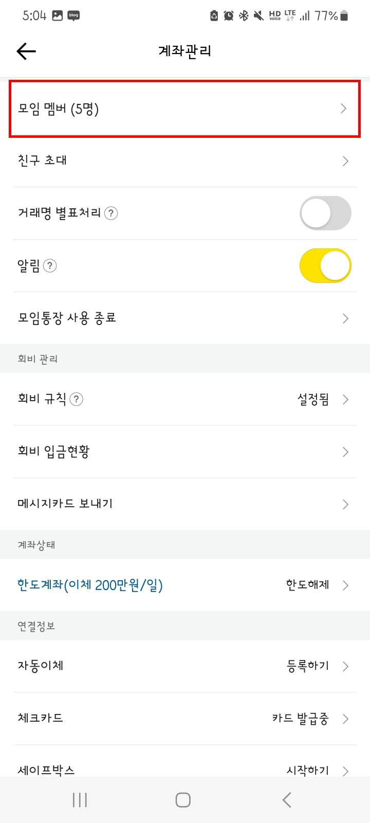 ⑤카카오뱅크 모임통장 체크카드 만들기