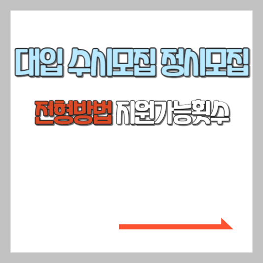 이상으로 오늘은 대입 수시모집과 정시모집의 전형방법, 지원가능횟수 등에 대해 함께 알아보았습니다. 잘 정리하셔서 도움이 되었으면 합니다.