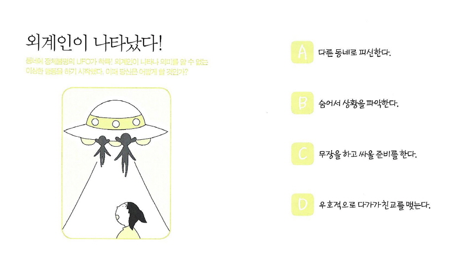 동네에 정체불명의 UFO가 착륙! 외계인이 나타나 의미를 알 수 없는 이상한 행동을 하기 시작했다. 이때 당신은 어떻게 할 것인가?