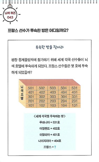 프랑스 선수가 투숙한 방은 어디일까요? 여러분의 상상력을 최대한 발휘해 보세요.