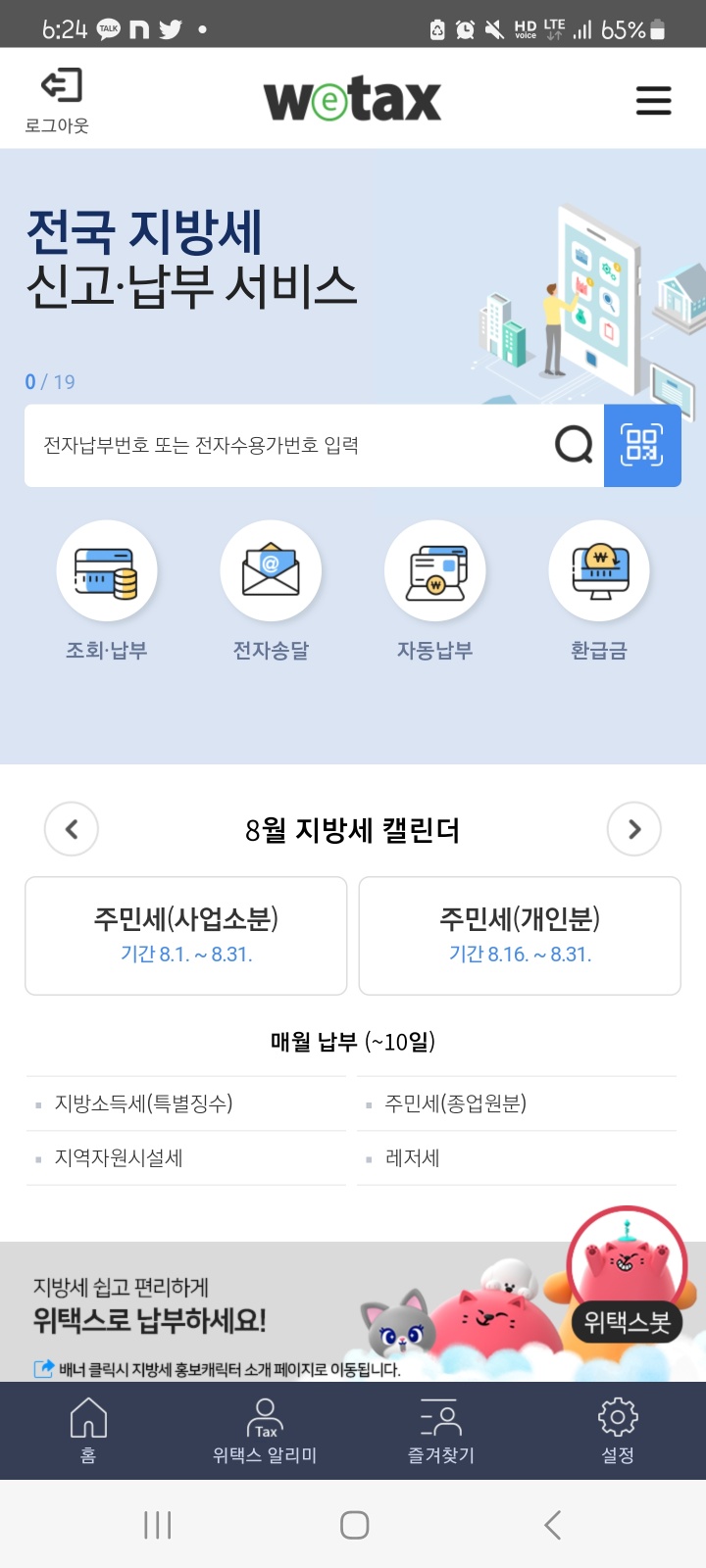 주민세의 경우 고지서 수령을 통해 확인할 수 있지만 혹시 받지 못한 경우나 고지서 수령전 조회하고자 할 경우 위택스를 통해 주민세 간편 조회가 가능합니다.