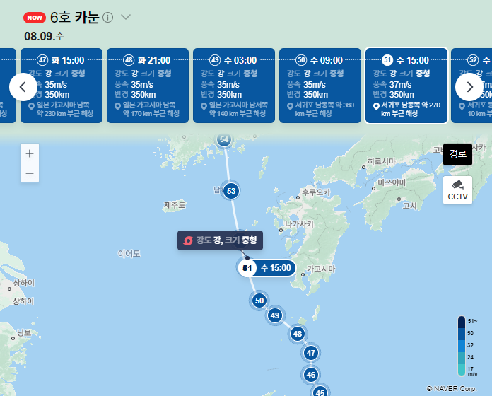 태풍의 직접 영향권에 들어서기 시작한 9일 현재 가장 궁금한 사항은 태풍 카눈의 실시간 이동 경로가 아닐까 합니다. 팩트 중심으로 태풍 카눈의 이동 경로만 빠르게 안내 드리겠습니다.