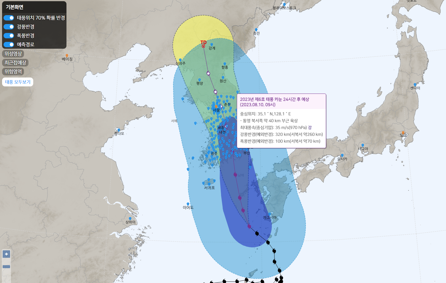 | 태풍 카눈 예상경로, '지역별 통과 시간, 이런 태풍 난생 처음?!' (2) | 2023.08.10 |