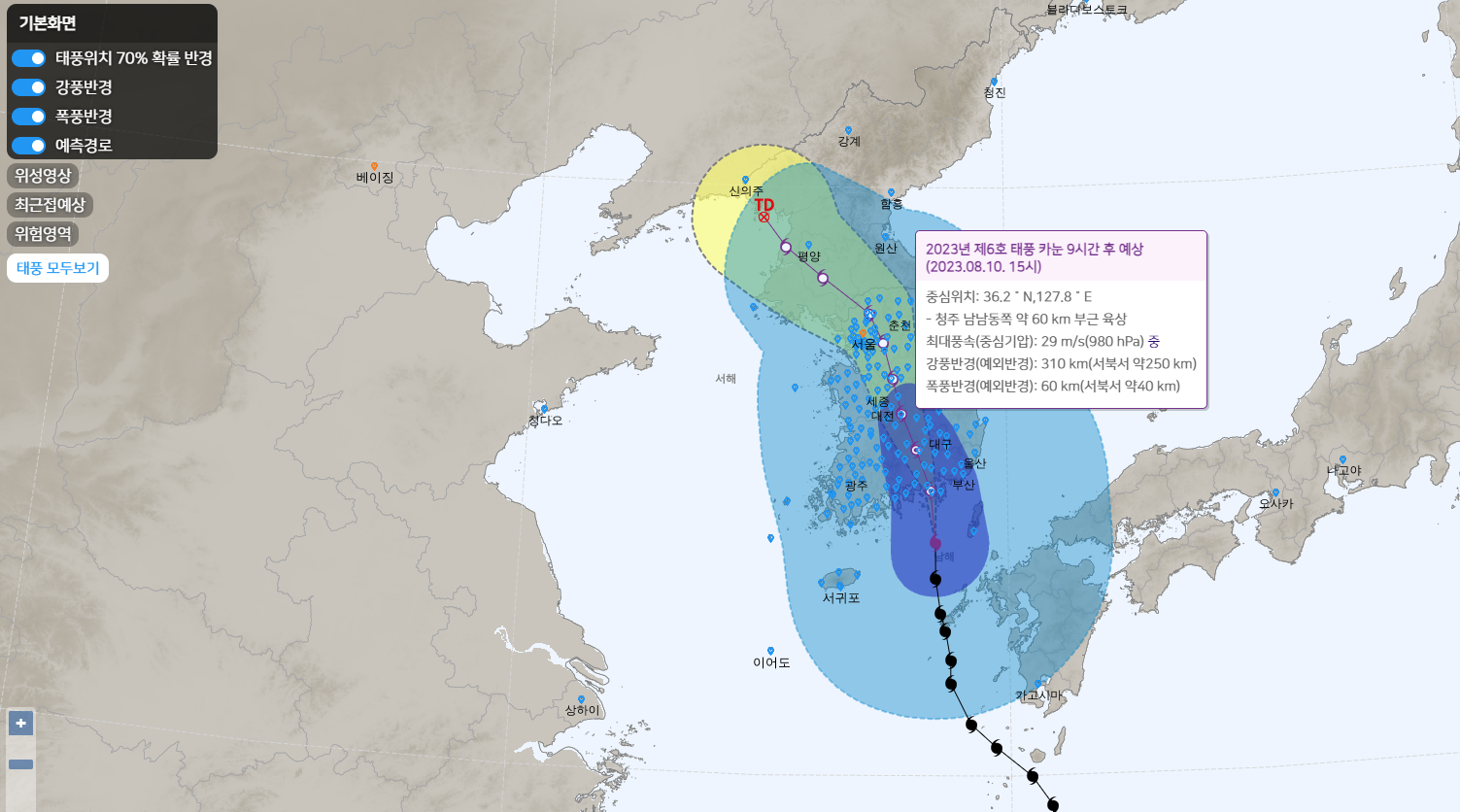 | 태풍 카눈 경로, '태풍 카눈 더 강력해져, 한반도 지역별 통과 시간' (2) | 2023.08.09 |
