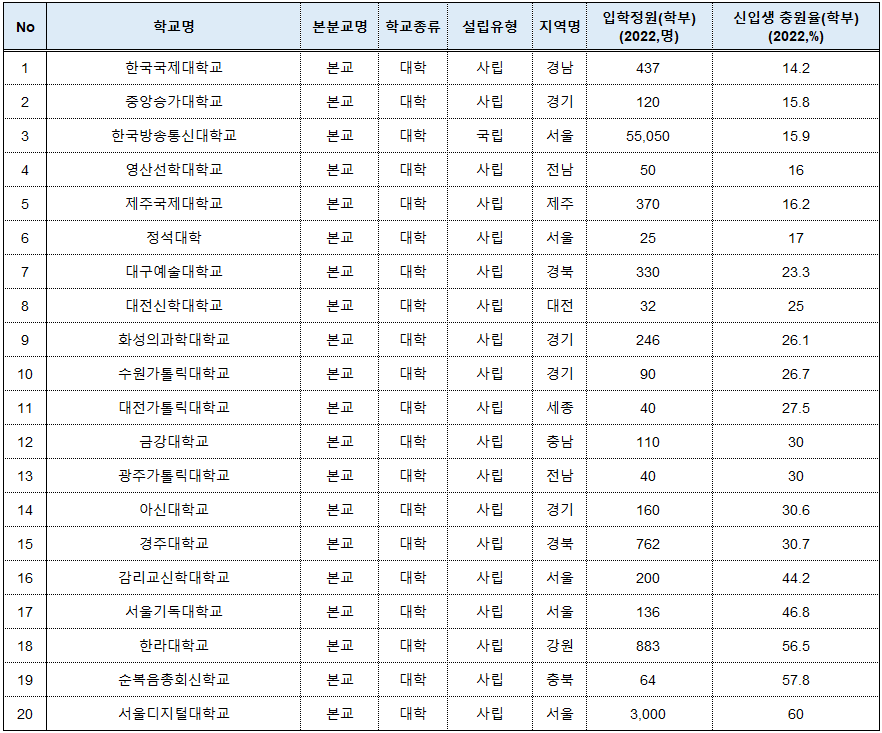 ③대학별 충원율 하위 20