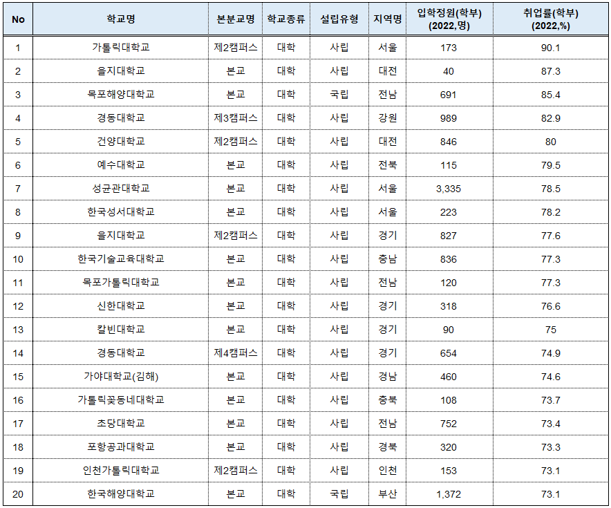 ②대학별 취업률 TOP 20