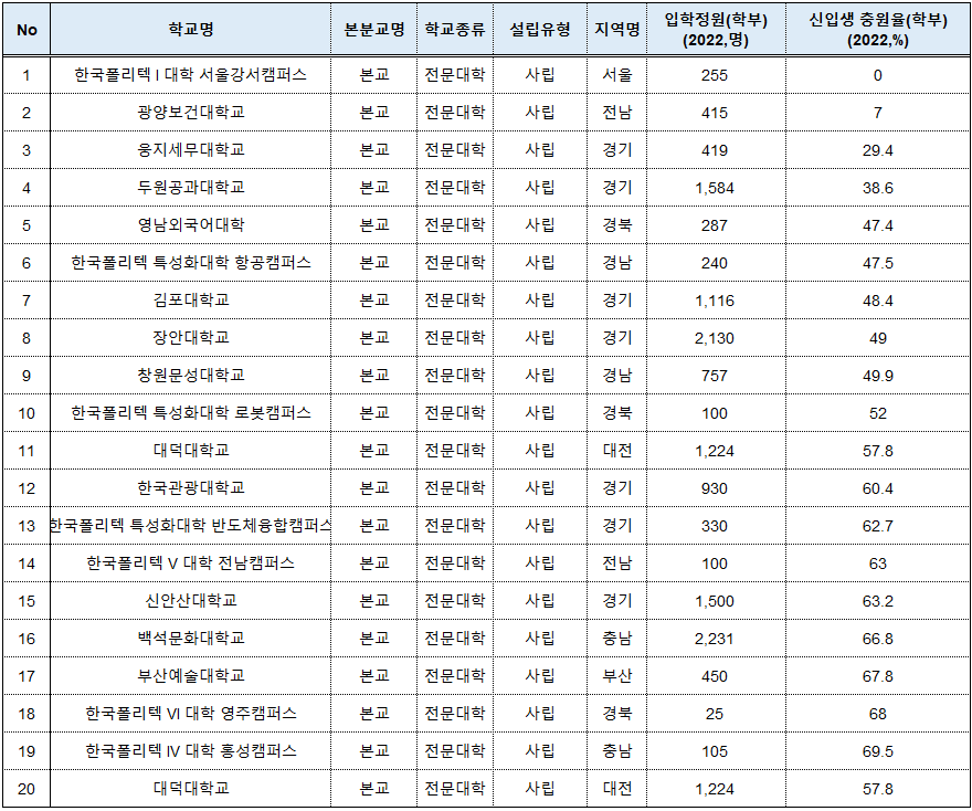 ③전문대학별 충원율 하위 20
