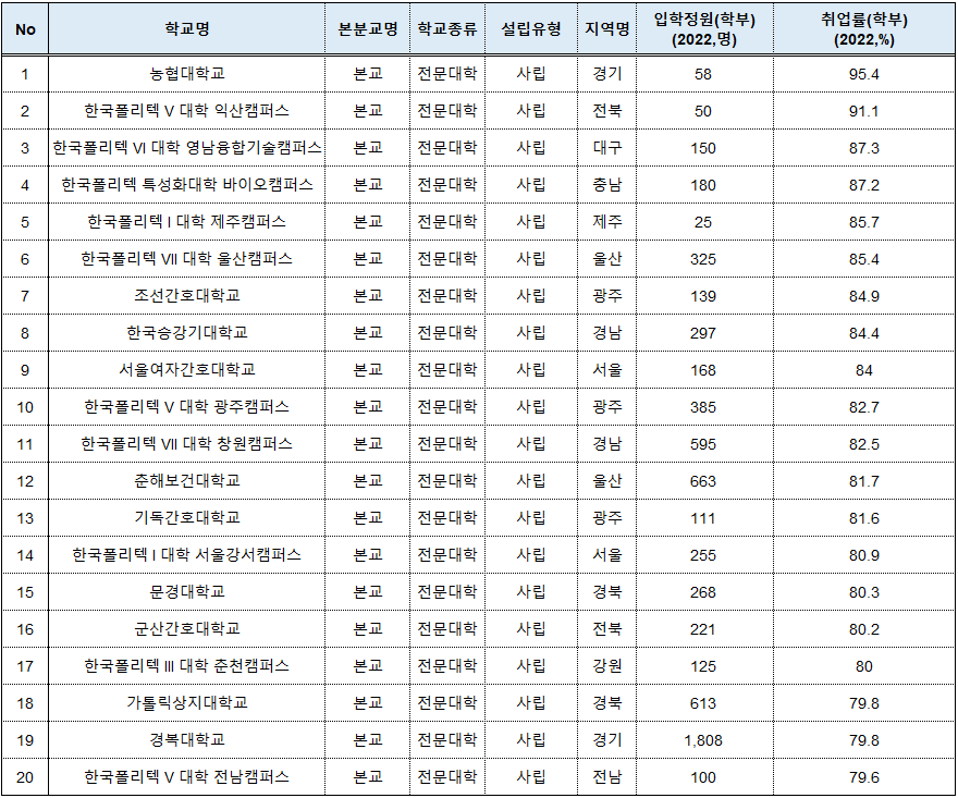 ②전문대학별 취업률 TOP 20