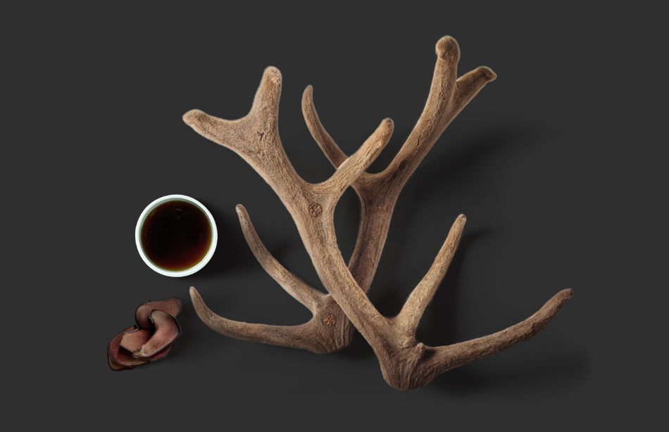 녹용이란 수사슴의 어린 뿔을 가리키는 것으로, 아직 골질화가 되지 않은 상태이거나 약간의 골질화가 된 연한 사슴의 뿔을 잘라 말린 것을 뜻합니다. 녹용은 부드럽고 연하며, 속은 피로 가득 차 있고, 표면은 부드러운 털로 이루어져 있습니다. 각종 고문헌을 통해 확인 할수 있는 것처럼 예로부터 녹용은 약해진 양기를 보충하기 위해 주로 사용되어 왔습니다.