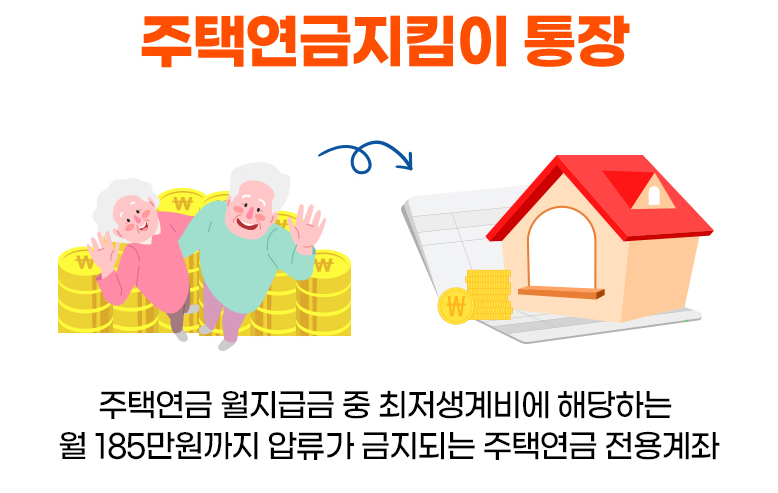 주택연금지킴이통장이란 무엇일까요? 이 통장은 주택연금 월지급금 중에서 최저생계비에 해당되는 금액(185만 원)까지만 입금이 가능하며, 입금된 금액에 대한 압류가 금지됩니다. 따라서 노후에 보다 안정적인 주택연금 수령을 가능하게 해주는 압류방지 주택연금 전용계좌라고 생각하시면 되겠습니다.
