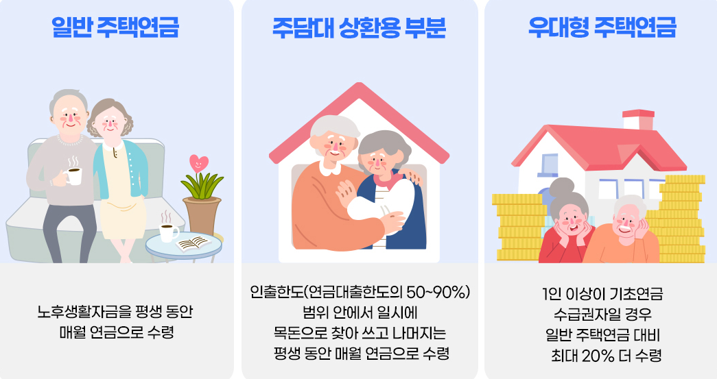 55세 이상의 노년층이 주택을 담보로 제공하고 노후생활자금을 평생 동안 매월 연금으로 수령하게 됩니다.