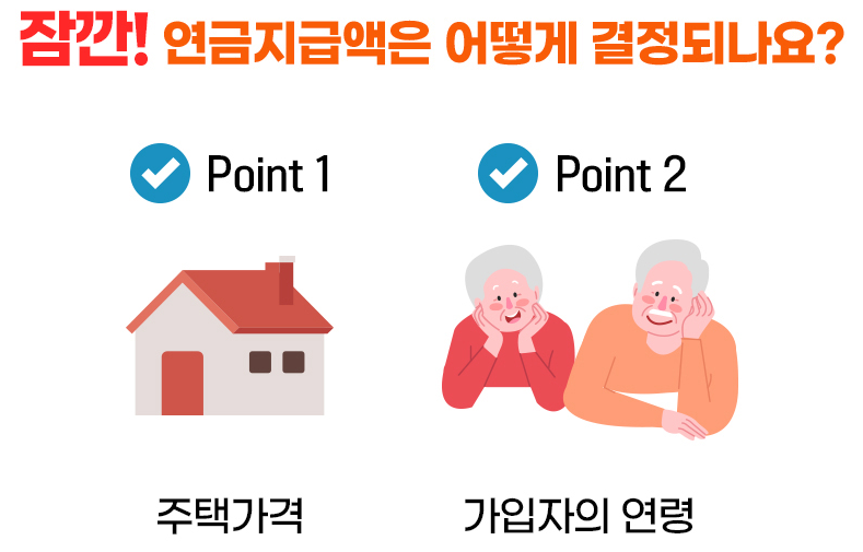 주택연금 가입 시에 주택을 담보로 매월 받으실 연금지급액의 결정 요인으로는 ①소유주택가격 ②가입 시점의 연령 두 가지입니다. 이 두가지 요인에 따라서 연금지금액이 최종 결정됩니다.