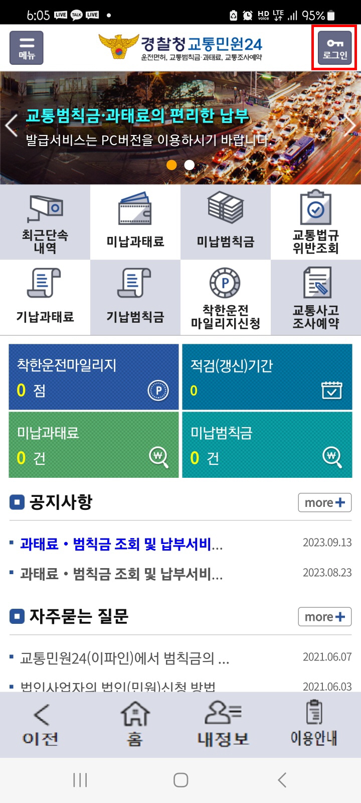• 간편인증(카카오/네이버) 로그인 후 '미납과태료' 클릭