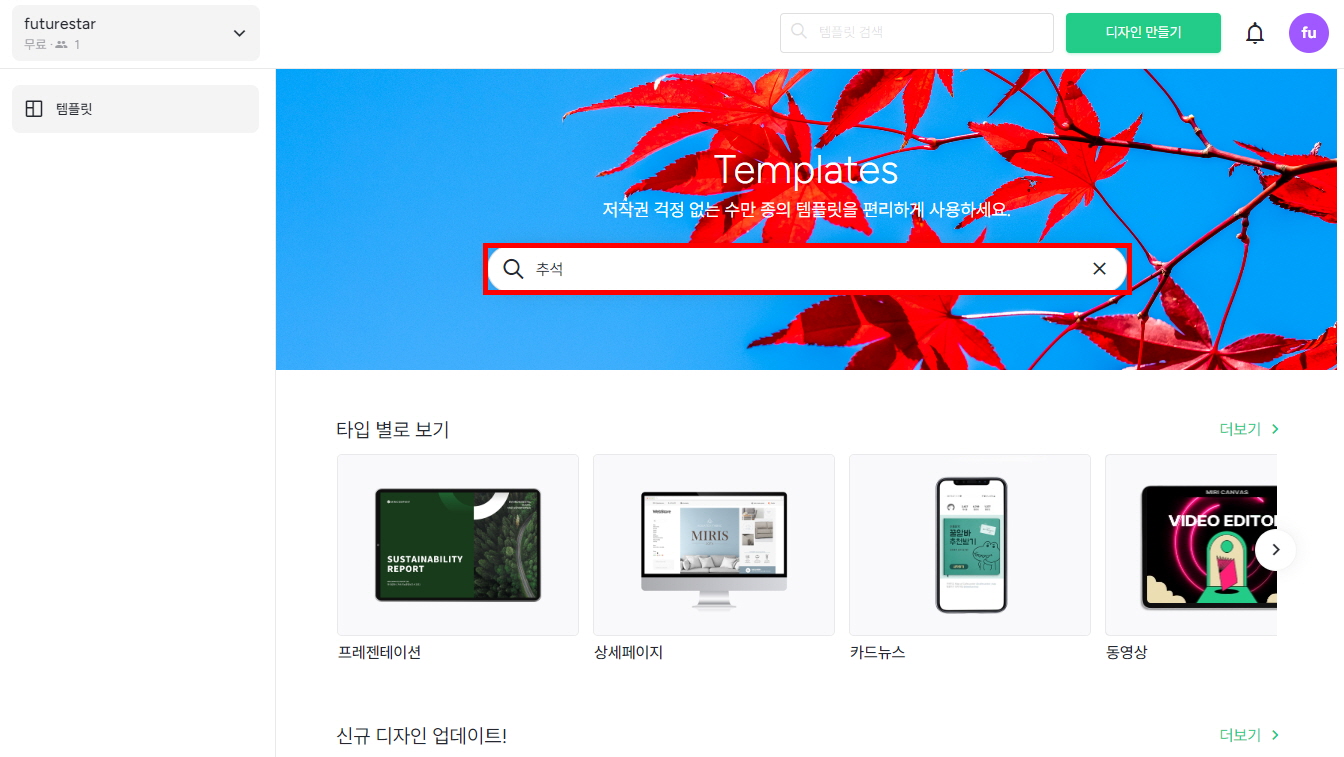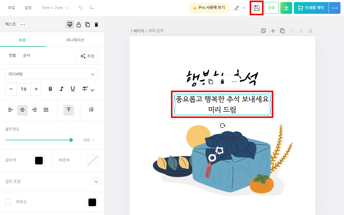 미리캔버스 추석 인사말 카드 만들기 순서