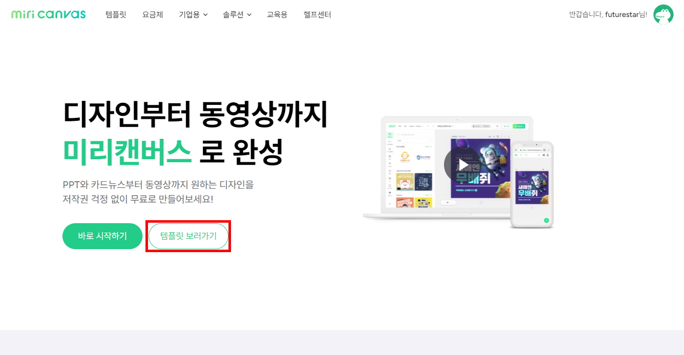 • 홈페이지 접속 → 템플릿 보러가기 클릭