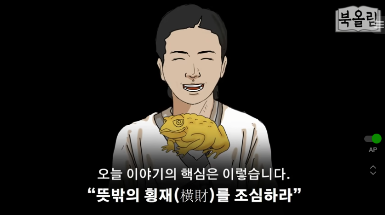 뜻밖의 횡재를 싫어할 사람은 잘 없지 않을까요? 하지만, 횡재란 놈은 언제나 불안감(걱정)과 함께 내게 온다는 사실 꼭 기억하세요. 황금두꺼비를 발견하고 내내 불안해 했던 영상의 주인공처럼 말예요.