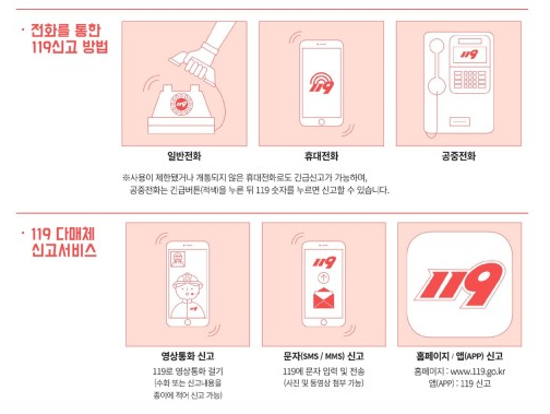 - 휴대전화의 경우, 사용제한된 전화나 개통이 않된 전화도 긴급신고가 가능합니다.