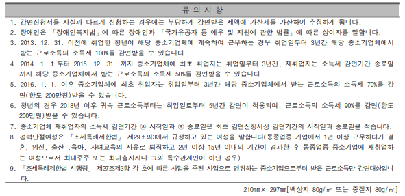 2.중소기업 취업자 소득세 감면 신청서 작성방법