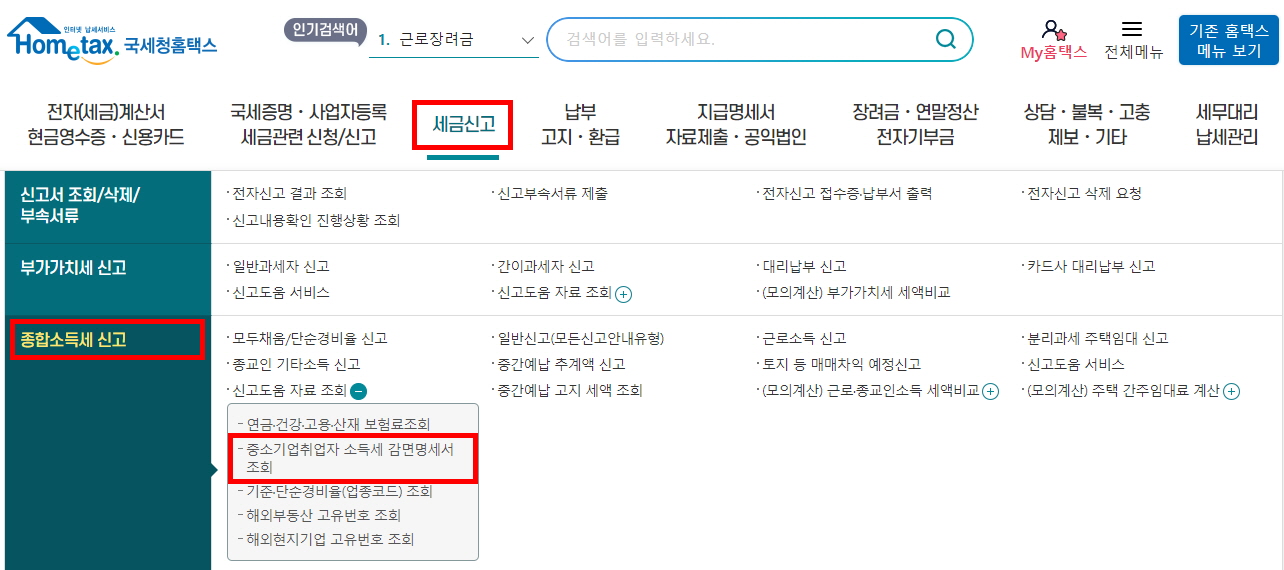 1.중소기업 취업자 소득세 감면 신청서 다운로드