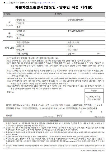 - 폐차 또는 중고차 거래 시 복잡한 서류