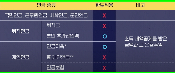 1,200만 원 한도가 적용되는 사적연금의 종류는 아래를 참고하시기 바랍니다. 단, 10년 이상 유지 시 비과세가 적용되는 개인연금보험 상품은 포함되지 않습니다.