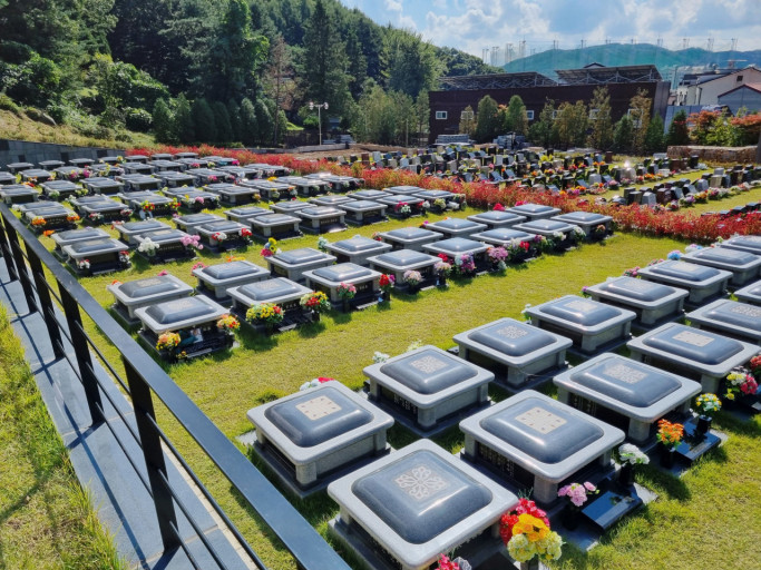 • 필요서류 : 사망진단서 1부, 주민등록등본 1부, 신청서(공원묘지 비치) 1부, 고인 증명사진 1매 (상기 서류는 각 공원묘지마다 상이할 수 있습니다.)