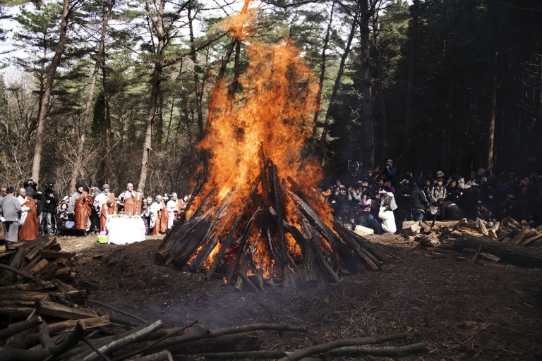 위의 순서로 영결식을 거행한 후 장지로 이동하며, 불교에서는 화장을 합니다. 화장할 때는 시신을 분구에 넣고 끝날 때까지 염불을 그치지 않으며, 다 타면 흰 창호지에 유골을 받아서 상제에게 주어 쇄골한 다음, 법주가 있는 절에 봉안하고 제사를 지냅니다.