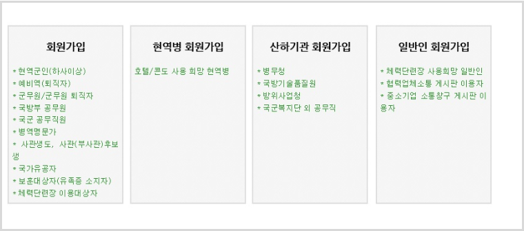 국군복지포탈 이용대상