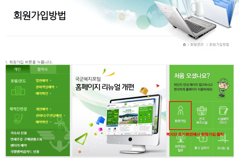 2. 국군복지포탈 호텔 콘도 예약방법