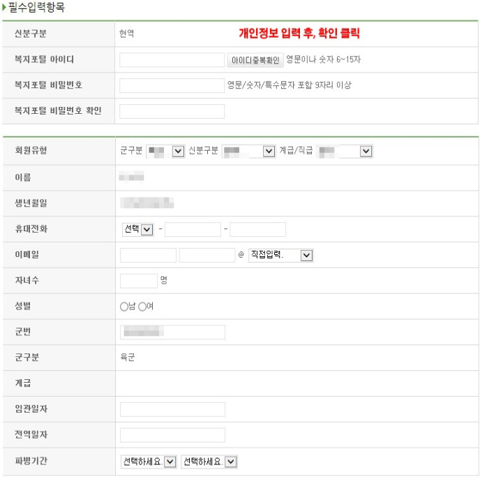 국군복지포탈 회원가입
