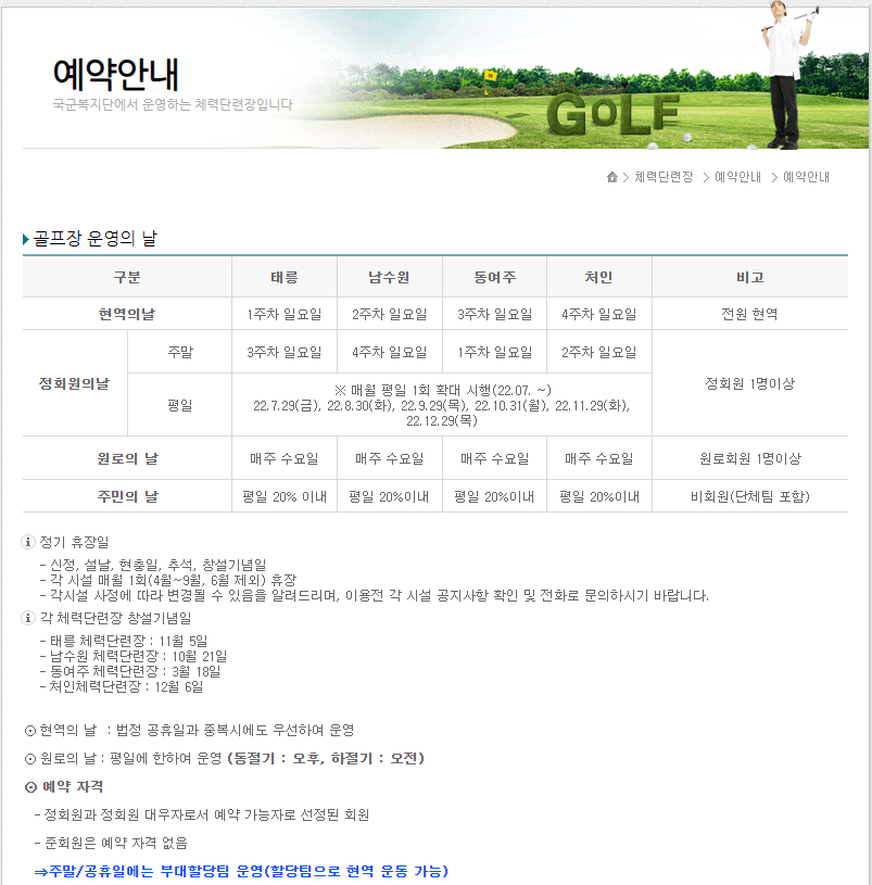 1. 국군복지포탈 체력단련장(골프장) 예약방법