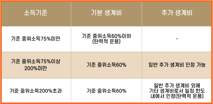 2024년 채무자의 소득 구간별 특별 생계비 항목도 신설 되었습니다. 세부 내용은 아래의 표를 참고하시면 되겠습니다. 채무자의 소득이 기준 중위소득의 75%이상 200%미만의 경우 '일반 추가 생계비' 인정이 가능하며, 기준 중위소득 200%초과 시에는 '일반 추가 생계비 외에도 기타 생계비'로서 일정 한도내에서 인정이 가능해 졌습니다.