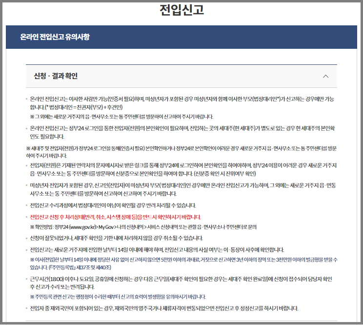 다음의 경우에는 인터넷 전입신고가 불가능 합니다.