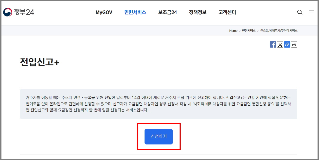 인터넷 전입신고 신청 시 요금감면대상자의 경우 전기요금, 지역난방비, 도시가스 요금, TV수신료 등의 감면까지 동시에 처리가 가능하니 참고하세요. 만약 토요일, 일요일 및 공휴일에 이사를 한 경우라면 인터넷 정부24 홈페이지를 통해 전입신고가 가능하지만 월요일에 서류 처리가 되고, 화요일부터 효력(대항력)이 발생됩니다.