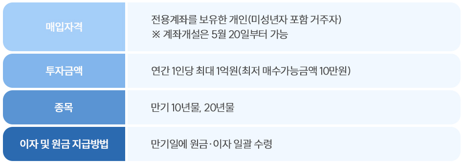 - 매입한도: 1인당 연간 1억원 한도