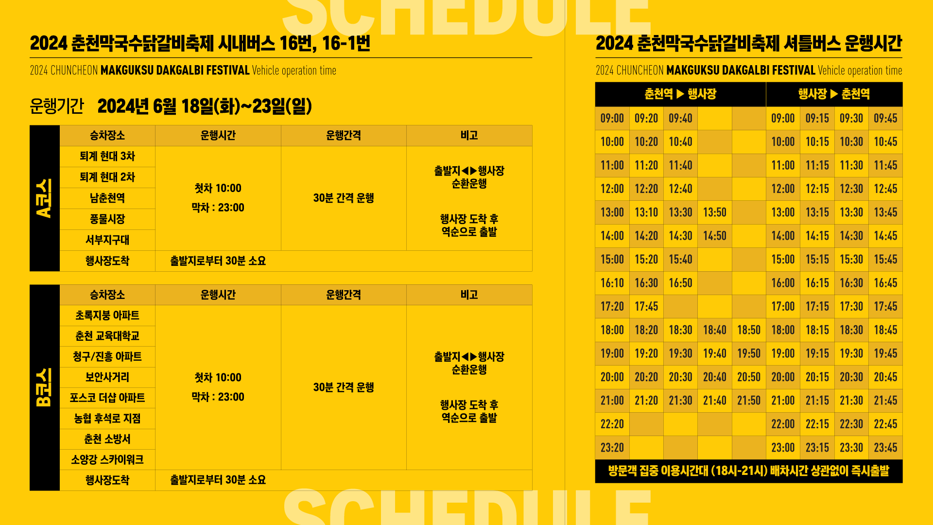 축제장소 이동 버스시간표 및 셔틀버스 운행시간표와 승강장 위치는 아래를 참조하시면 되겠습니다.