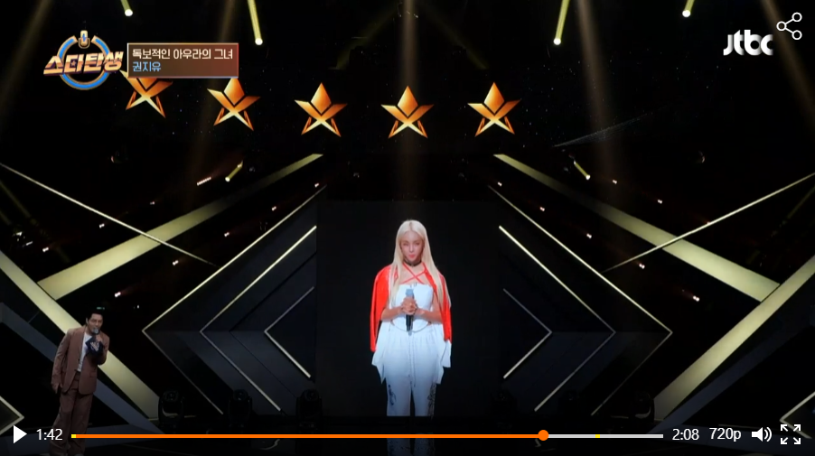 이날 jtbc 스타탄생 권지유는 화려한 비주얼의 소울부자 부캐로 스타메이커들과 관객들의 관심을 한 몸에 받았습니다. 결론부터 말씀드리면 jtbc 스타탄생 권지유는 자우림의 마론인형/유미 별을 불렀습니다. 천상의 목소리와 절정의 감정표현으로 1, 2라운드 합산 166별을 받아 4회 스타탄생 권지유가 되었습니다. (1회 스타탄생 쥬시팍 에이핑크 남주 172점/ 2회 스타탄생 비즈 김태연 187점/ 3회 스타탄생 여린 노사연 178점)