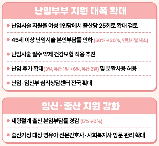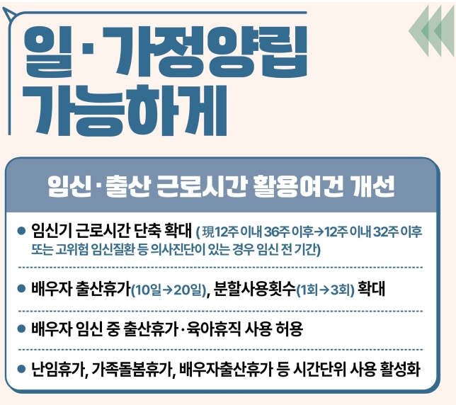 • 난임휴가 확대(3 → 6일), 제왕절게 무료화 등