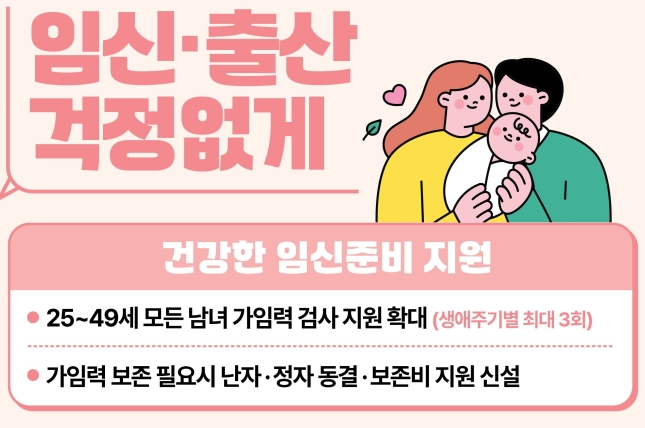 • 25~49세 모든 남녀 가임력 검사 지원 확대(1회 → 3회)