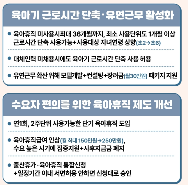 • '더 유연하게' 단기 육아휴직 도입(연 1회 2주)