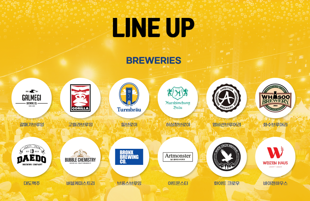 다양한 수제맥주를 무제한으로 시음할 수 있는 비어존, 재미있는 이벤트와 게임이 넘쳐나는 이벤트존, 힙한 디제잉 파티를 함께 즐길 수 있는 DJ존 등이 마련되어 있습니다. 특히, 맥주와 찰떡궁합인 안주를 맛볼 수 있는 푸드존도 있어 잊지 못할 경험을 할 수 있습니다. 이번 행사에 참여하는 수제맥주와 푸드 라인업은 아래 이미지를 참고하시면 되겠습니다.