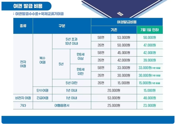 2024년 7월 1일부터 여권발급 비용이 3,000원 저렴해졌고, 정부에서 운영하는 앱이 아닌 민간 앱을 통해서도 온라인으로 여권 재발급 신청이 가능해 집니다.