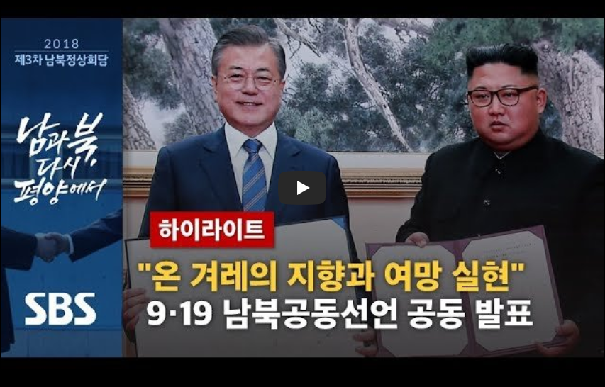 ▶2018년 평양에서 열린 남북정상회담에서 9월 평양공동선언