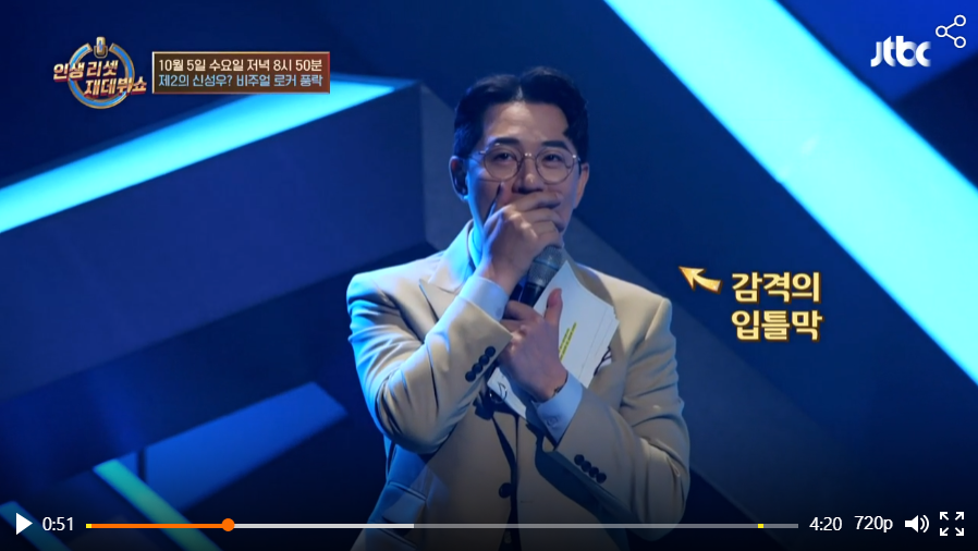jtbc 인생 리셋 재데뷔쇼 스타탄생 1호 쥬시팍의 정체는!