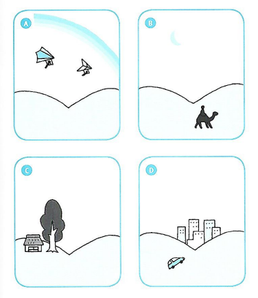 그림을 보시면 캔버스에 하늘과 땅만 그려져 있다. 이대로는 그림이 너무 쓸쓸하므로 다른 무언가를 그려넣어 한 폭의 풍경화를 완성해보자. 다음 중 어떤 그림처럼 그리겠는가?