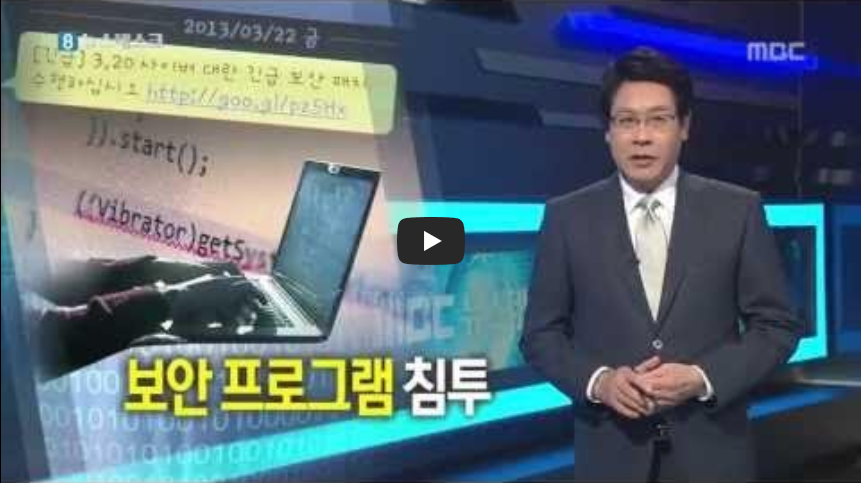 ▶2013년 은행과 방송사 등이 전산망이 마비되는 3.20 전산망 마비사태