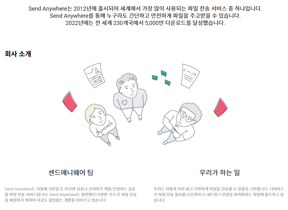 샌드애니웨어란 기존의 기기간 파일전송 방법인 갤럭시 퀵쉐어, 블루투스, 와이파이 다이렉트, USB, 카카오톡 등에 비해 기기간 제약이 거의 없고, 가장 쉽고 빠르게 무제한 파일 전송이 가능한 데이터 전송 서비스입니다. 결론부터 말씀드리자면 샌드애니웨어를 이용하면 갤럭시폰, 아이폰, 노트북, 데스크톱PC, 테블릿등 어떤 스마트기기 상호간에도 간편하게 대용량의 파일을 전송 할 수 있습니다. 개인적으로는 이제 더이상 기존의 어려운 방법들을 사용하지 않아도 샌드애니웨어 하나만 있으면 남녀노소 누구나 손쉽게 기기간 파일 전송을 할 수 있겠다는 생각입니다.