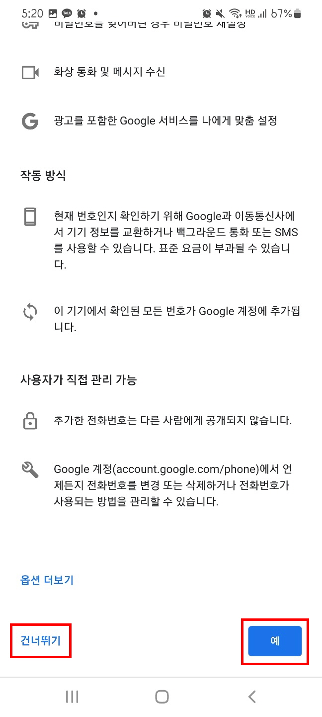 8. 다음으로는 전화번호 설정창이 나오는데 하단 왼쪽 [건너뛰기]를 클릭하여 스킵 처리 해줍니다.