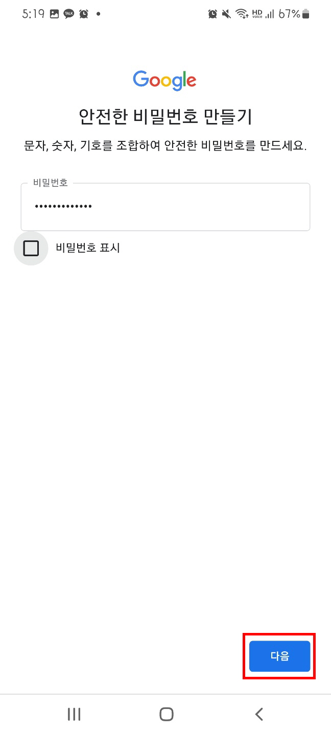 7. 비밀번호를 설정해 준 후 다음 버튼을 클릭해 줍니다.