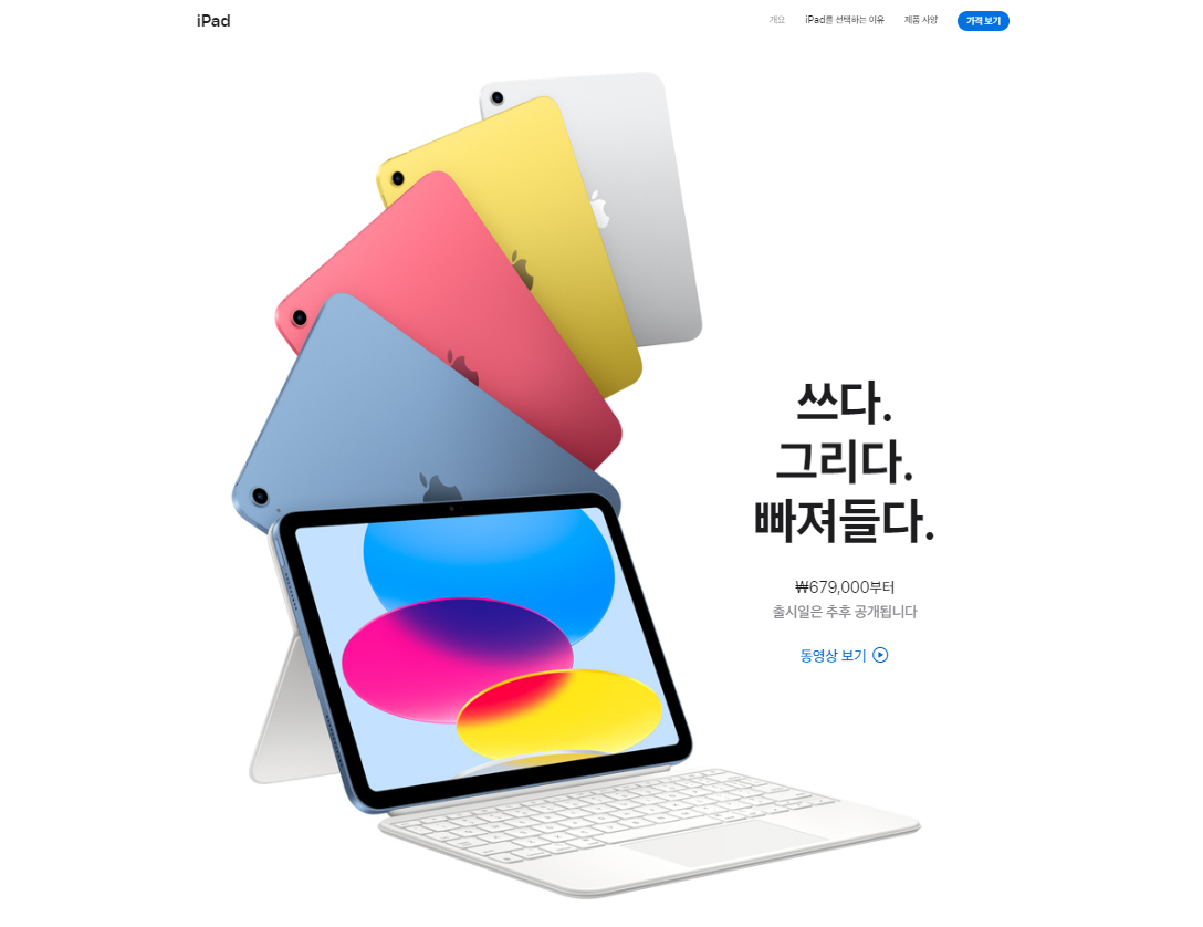 지난 10/19일 애플사는 새로운 버전의 아이패드 프로 6세대와 아이패드 10세대 제품을 선보였습니다. 먼저 아이프대 프로 6세대는 최신 M2 칩셋을 탑재하고 애플펜슬 호버(펜슬이 닿을 부분을 알려줘 정밀한 작업이 가능하게 하는 기능)기능이 추가되었지만 혁신이 될만한 눈에 띄는 변화는 찾아 볼 수 없습니다.
